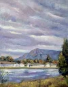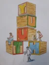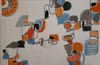 "COMPOSTION IN BROWN, BLUE,BLACK AND WHITE"